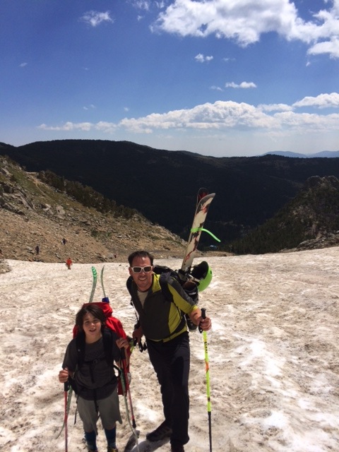 Image 3 Published September 2, 2014 at 480 × 640 in Skiing Every Month in 2014 = Building Grit in this 12 Year Old! Kai and Dad on the way up…