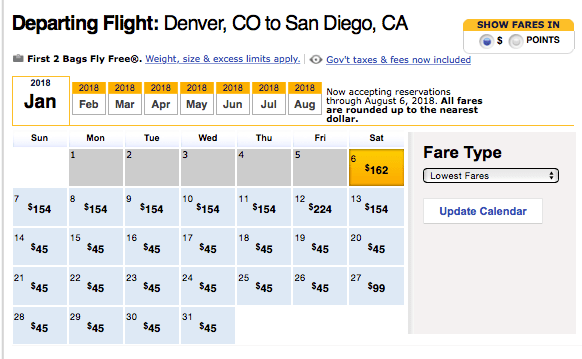 Screen Shot 2018-01-06 at 10.02.08 AM Published January 6, 2018 at 582 × 359 in Southwest Gets You Out of Town: Seriously Cheap Tix from Denver